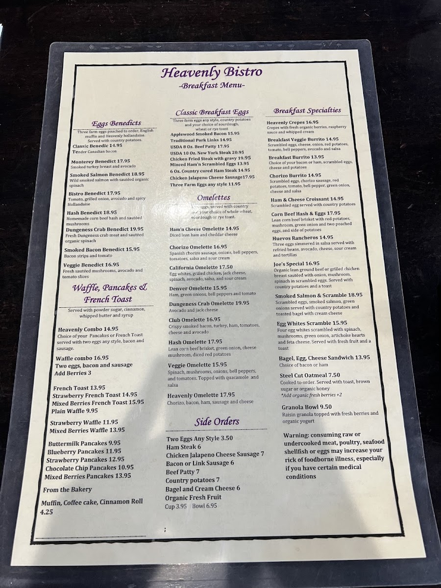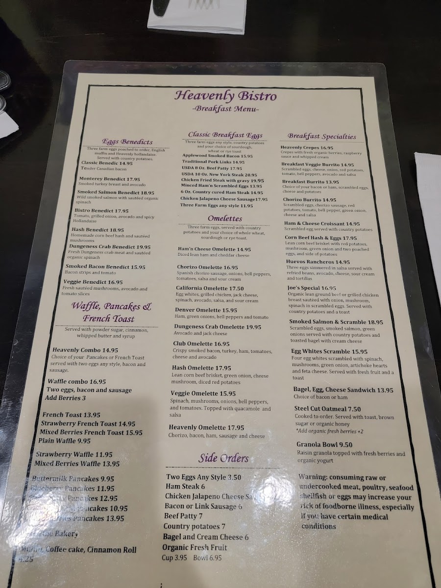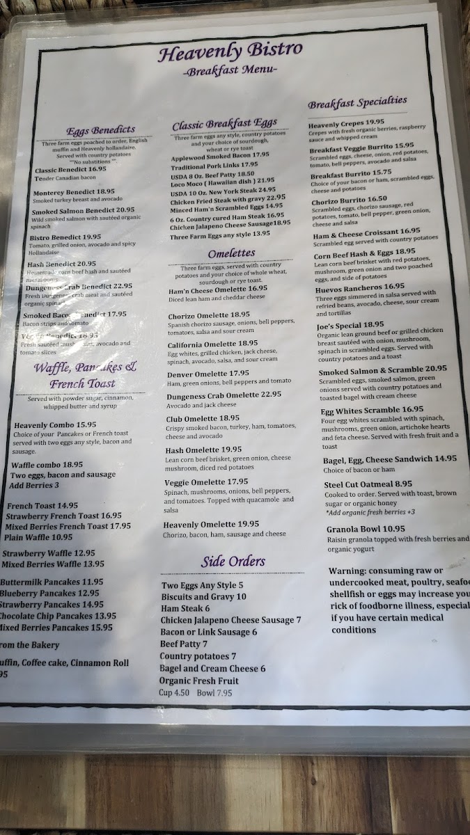 The atmosphere at Heavenly Bistro makes every visit special. Guests rave about the spacious layout and welcoming vibe, enhanced by natural light breezing through open doors. You'll feel right at home as you enjoy your meal while the friendly staff ensures your coffee cup is always full, a sentiment echoed in several customer reviews. Jaron Middleton captures the essence perfectly, saying, “Food was great, service was excellent and fun, and the atmosphere was delightful.” This attention to service not only enhances your dining but creates an inviting environment that encourages guests to linger just a little longer.